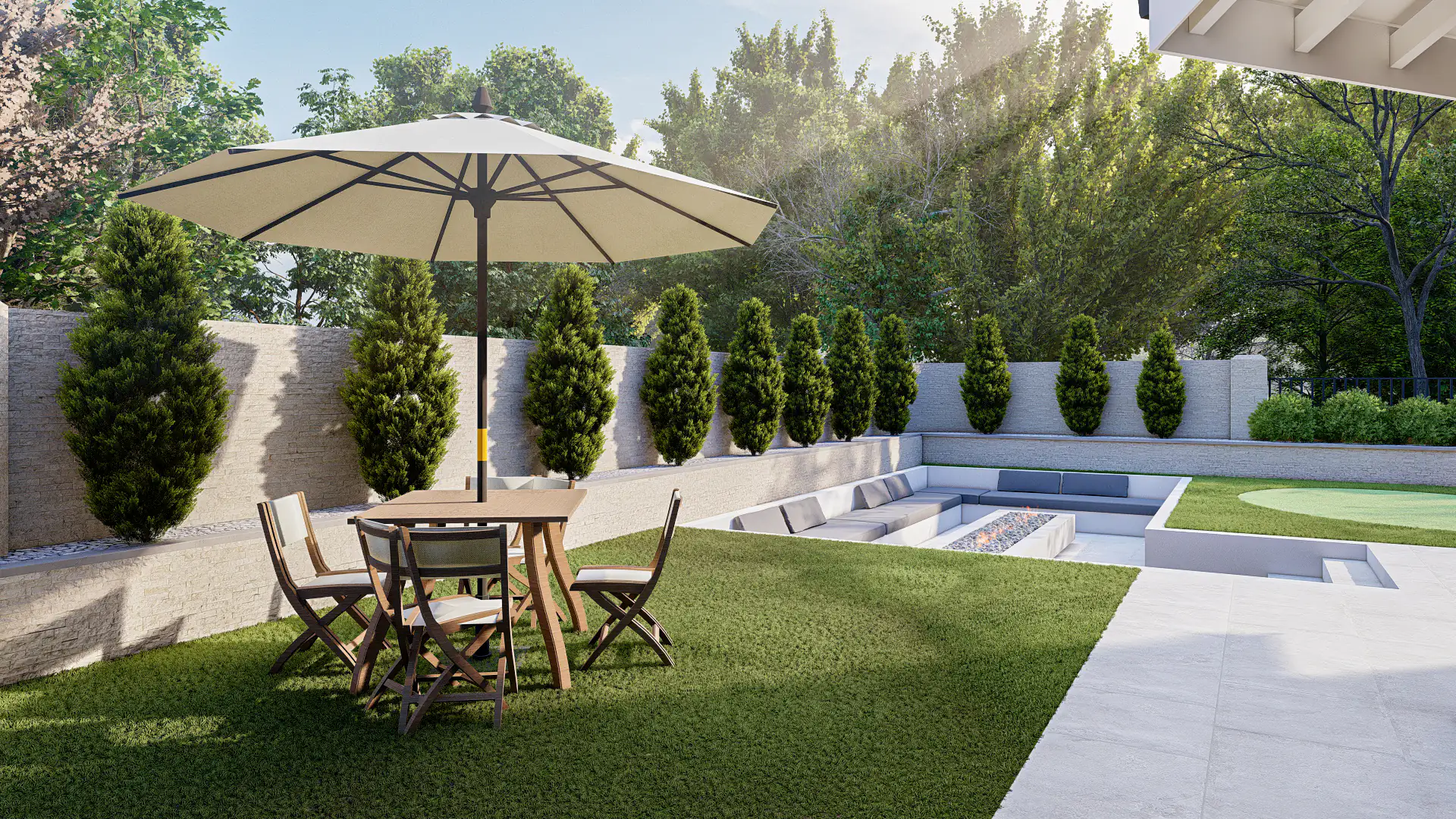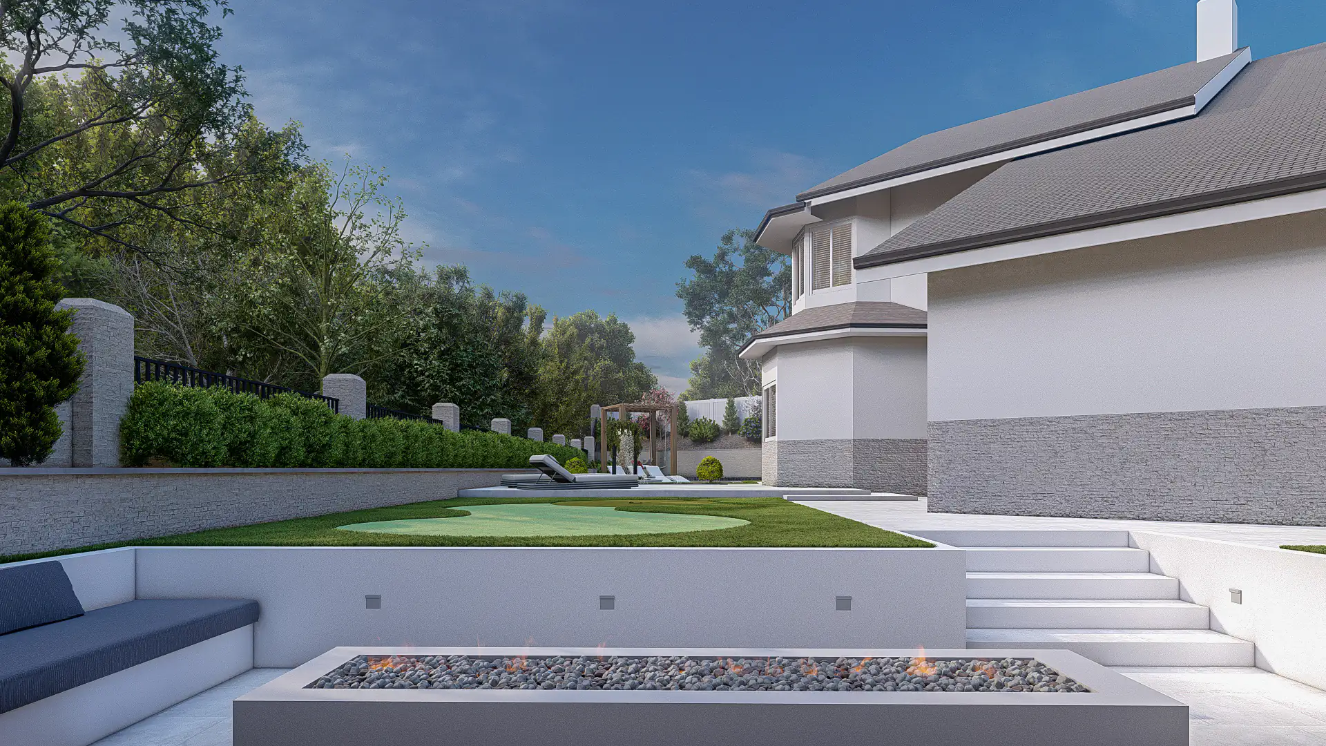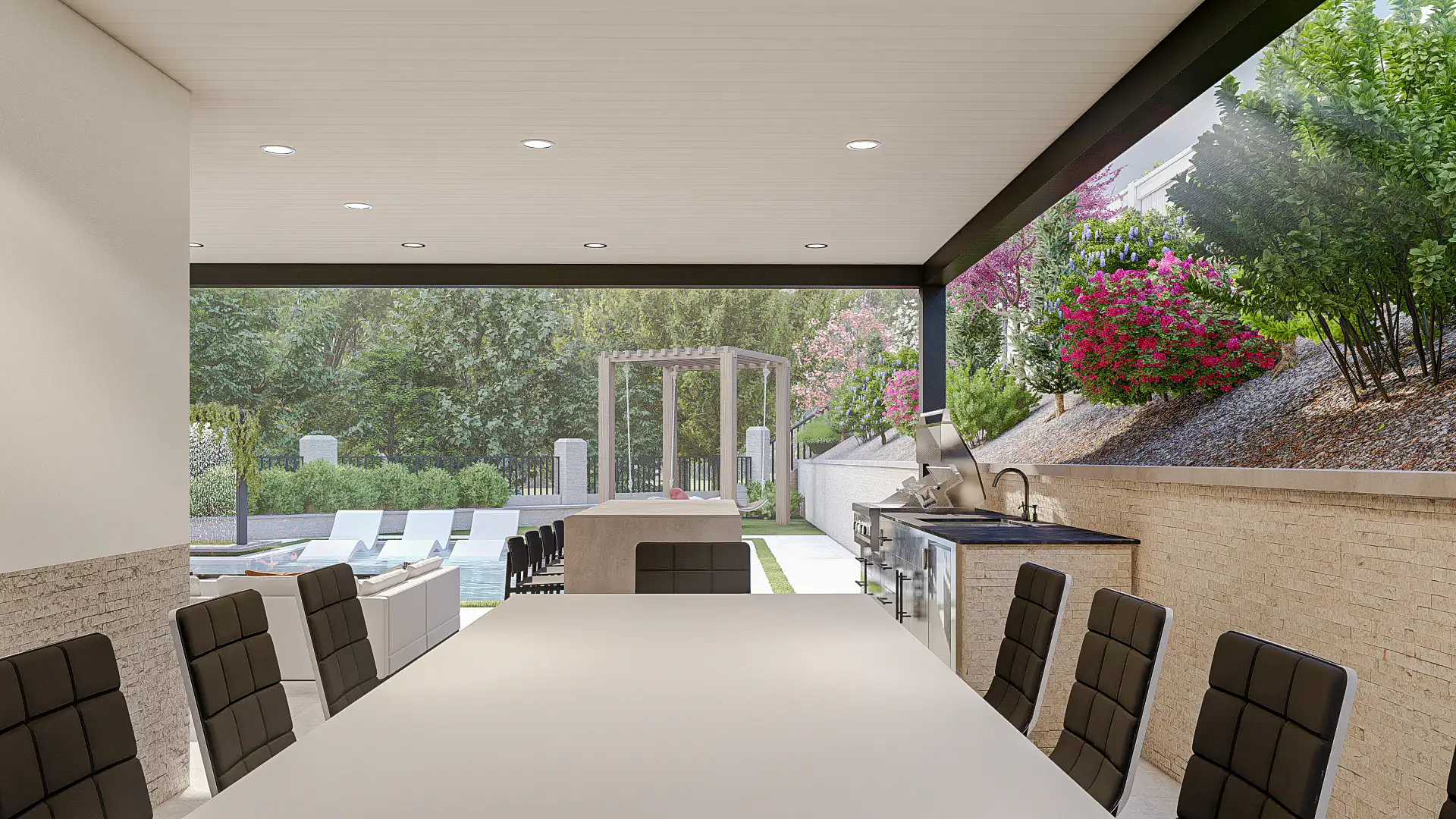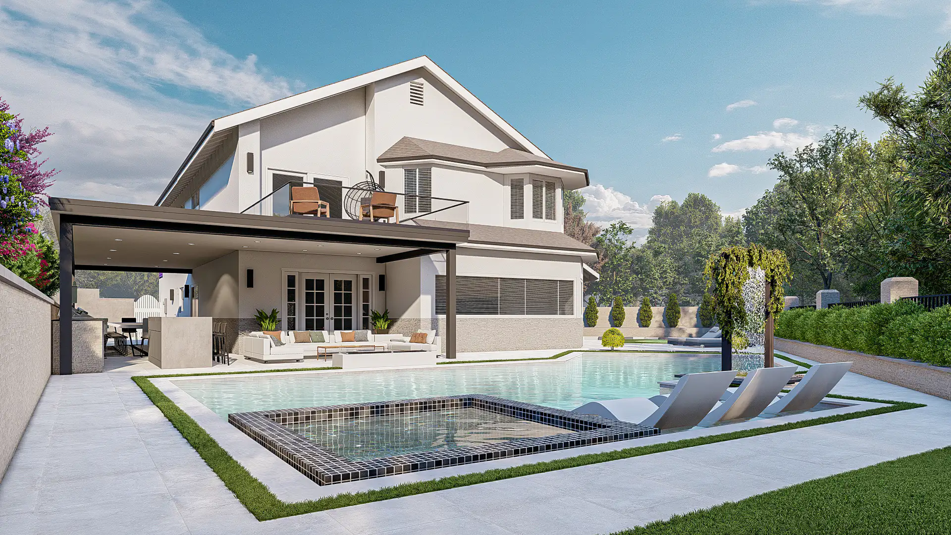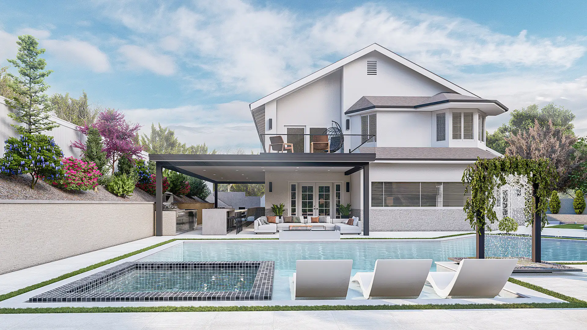 Every element—geometry, finishes, and landscaping—works together to create harmony, delivering a luxurious retreat that balances relaxation, entertainment, and contemporary elegance across the full outdoor experience.