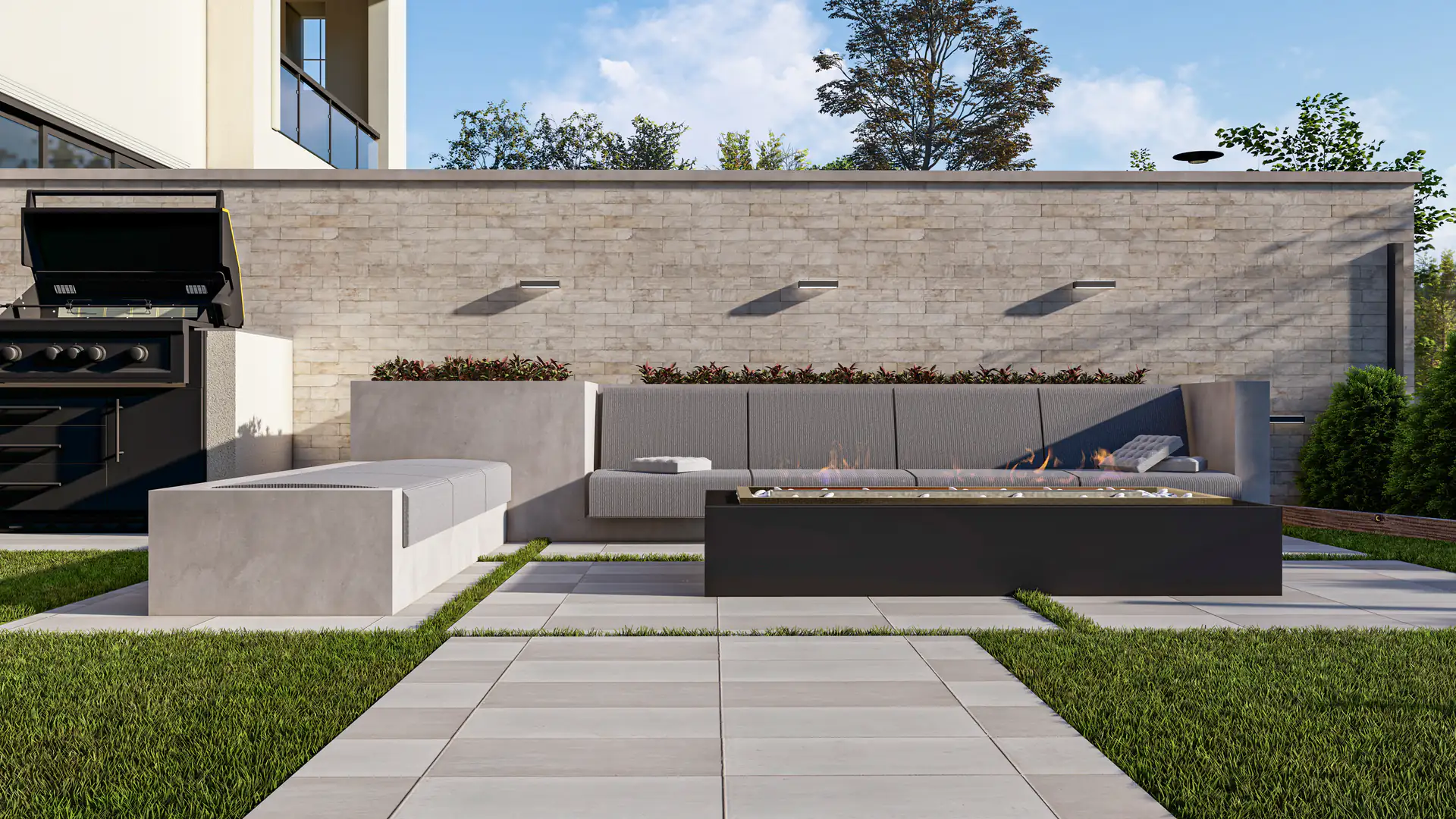 Neutral finishes pair with layered plantings and clean geometry, merging contemporary style with livable comfort in every functional outdoor zone.