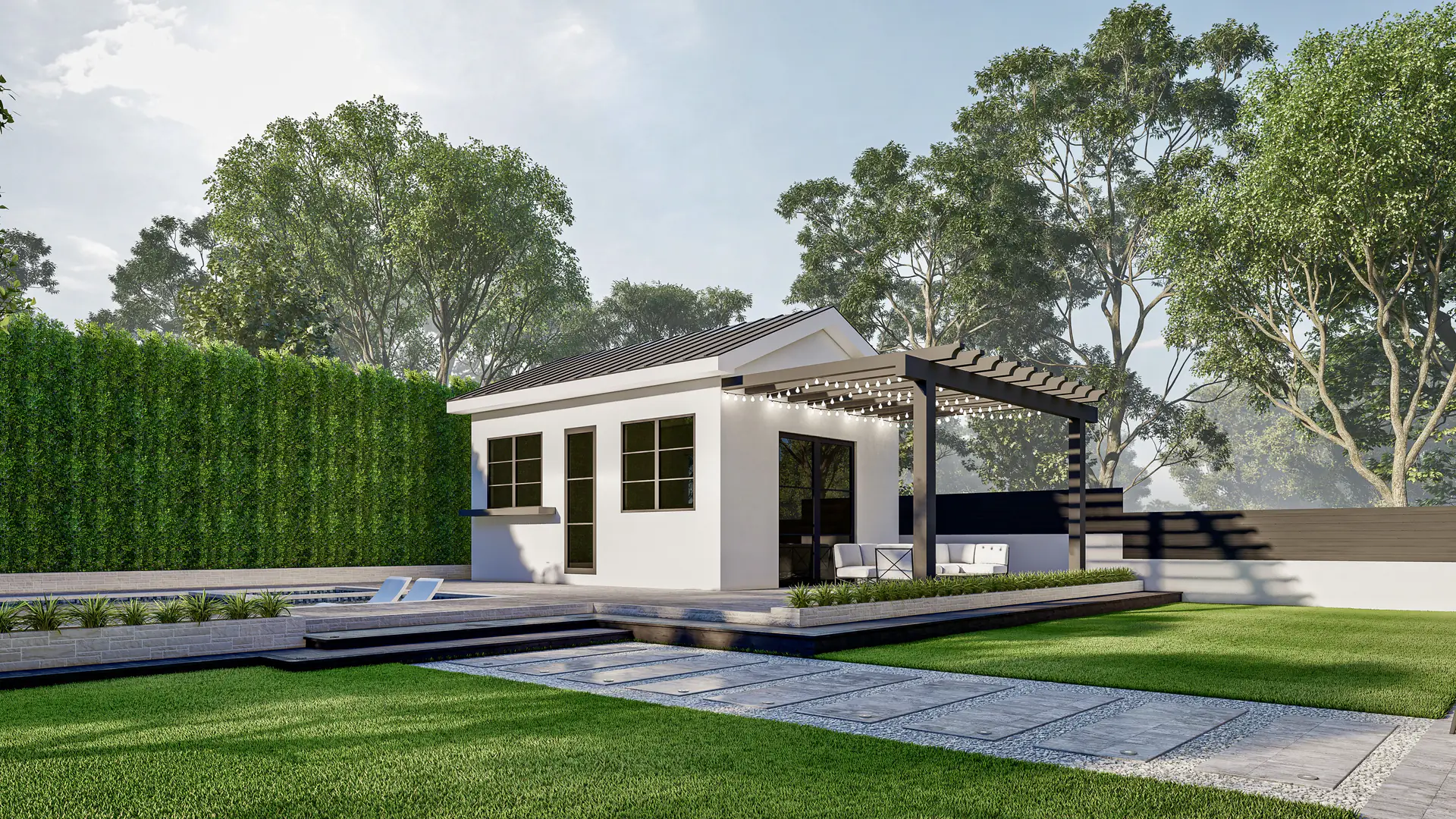 This property in Sherman Oaks was delivered with a plain, undeveloped exterior. Our team completely transformed the home and backyard into a modern luxury residence.
