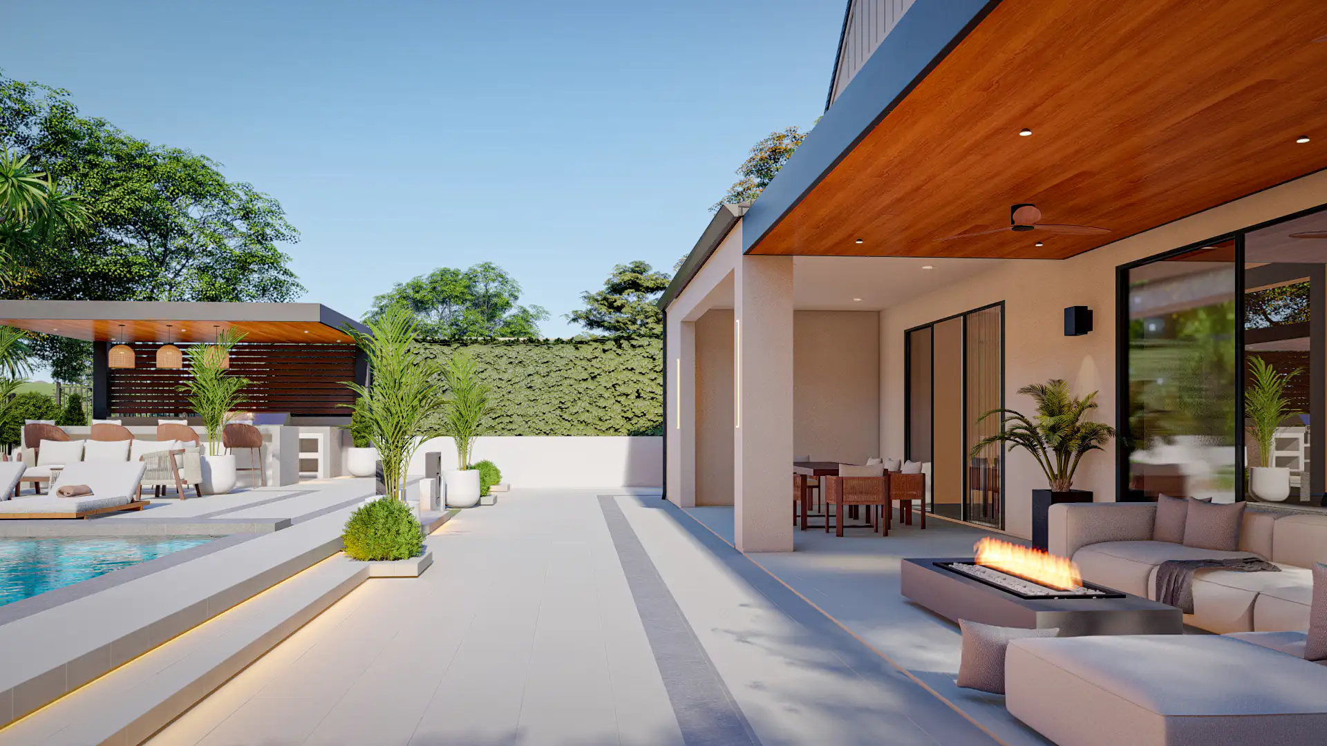 From plain to polished — this backyard was reimagined into a modern resort escape featuring clean geometry, layered materials, and integrated outdoor living zones.